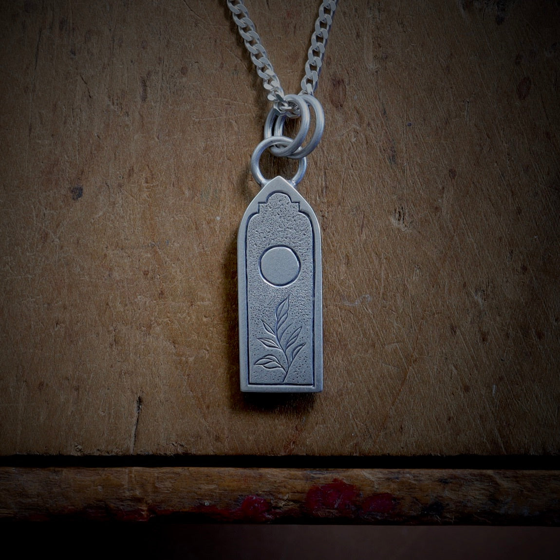 Hand engraved arch pendant made from Argentium silver with sun and seedling detail. Pendant is 1" tall. *LISTING IS FOR CHARM ONLY* Chains are available for purchase on the Add Ons page