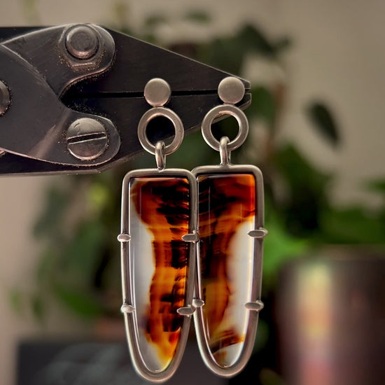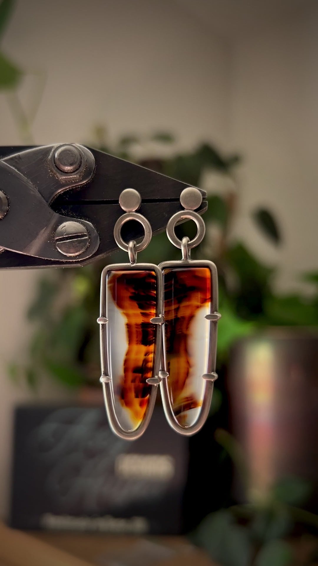 Montana Agate set in Argentium silver. Earrings are 2" tall.